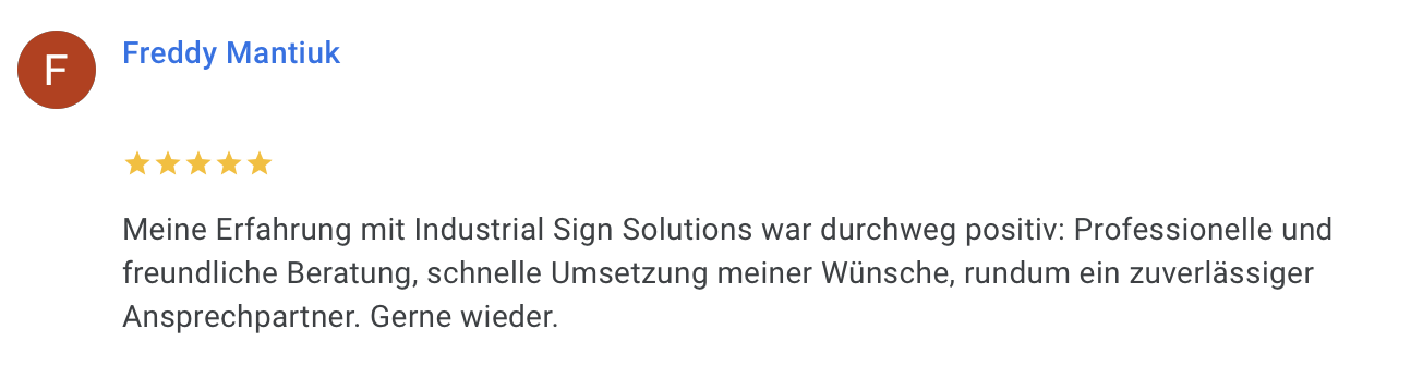 Sie wünschen ein maßgeschneidertes Angebot oder haben Fragen zu unseren Produkten? Unser Team liefert individuelle Lösungen, die exakt auf Ihre Anforderungen zugeschnitten sind. Sie erhalten Ihr individuelles Angebot inklusive Preis und Lieferzeit innerhalb von 24 Stunden – und nach Auftragseingang ist Ihre Ware in der Regel in unter 10 Tagen bei Ihnen. Schreiben Sie uns einfach an service@industrial-sign-solutions.com , und wir melden uns umgehend bei Ihnen.